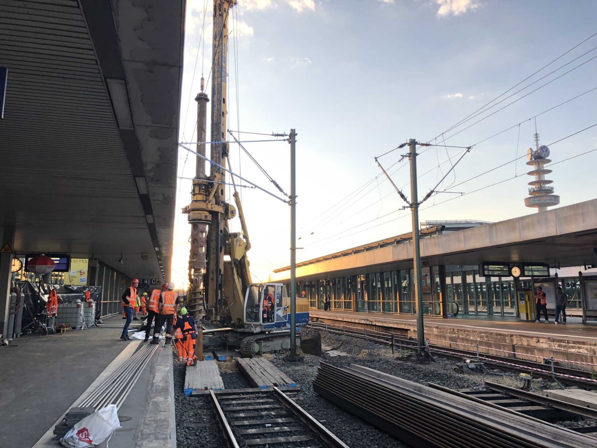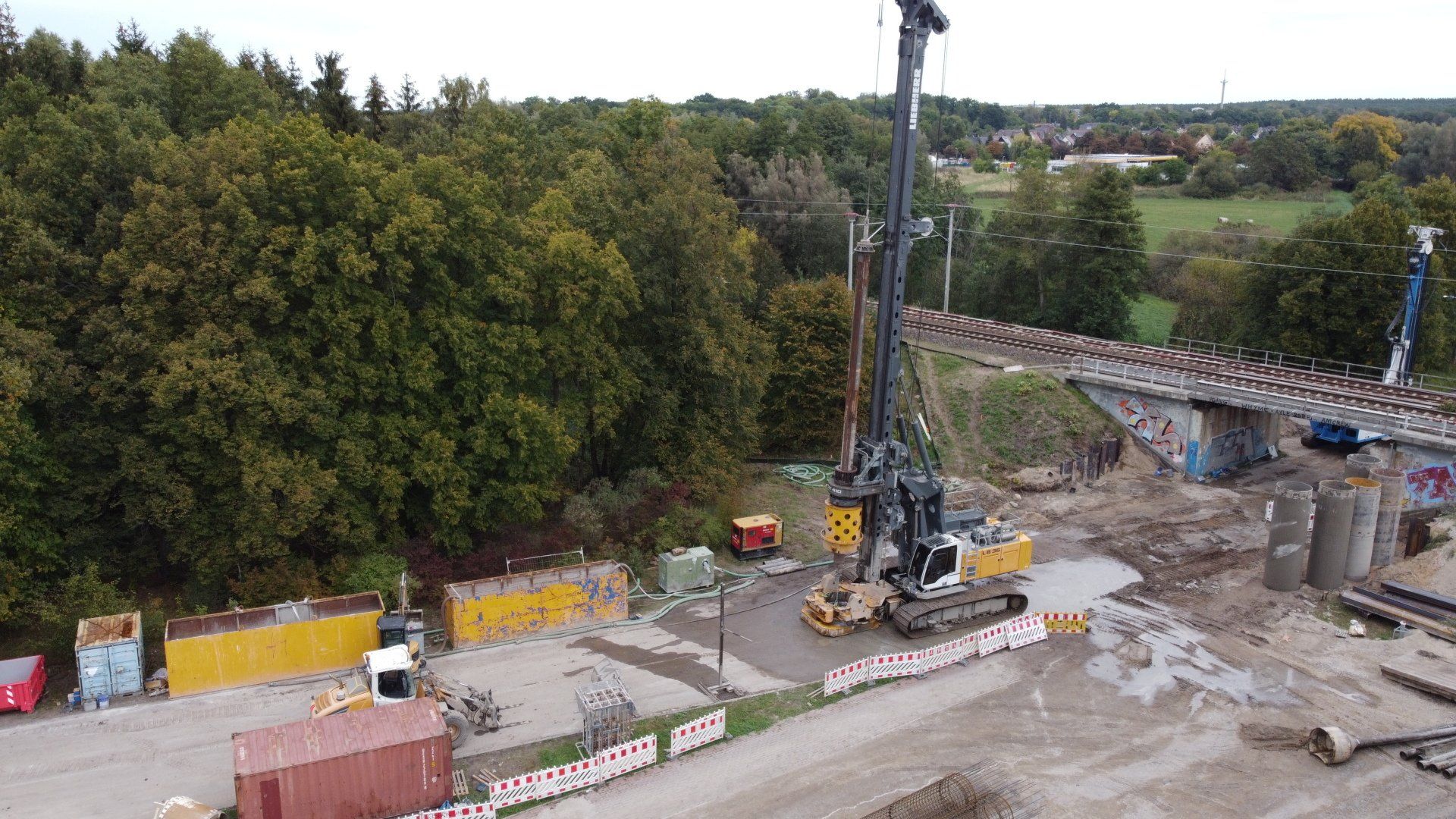 Räumungsbohrungen, Einbau Dichtwand mit eingestellten Spundwänden. Durchörterung von Lime- und Flintstone, 2.300 lfdm Bohrung.